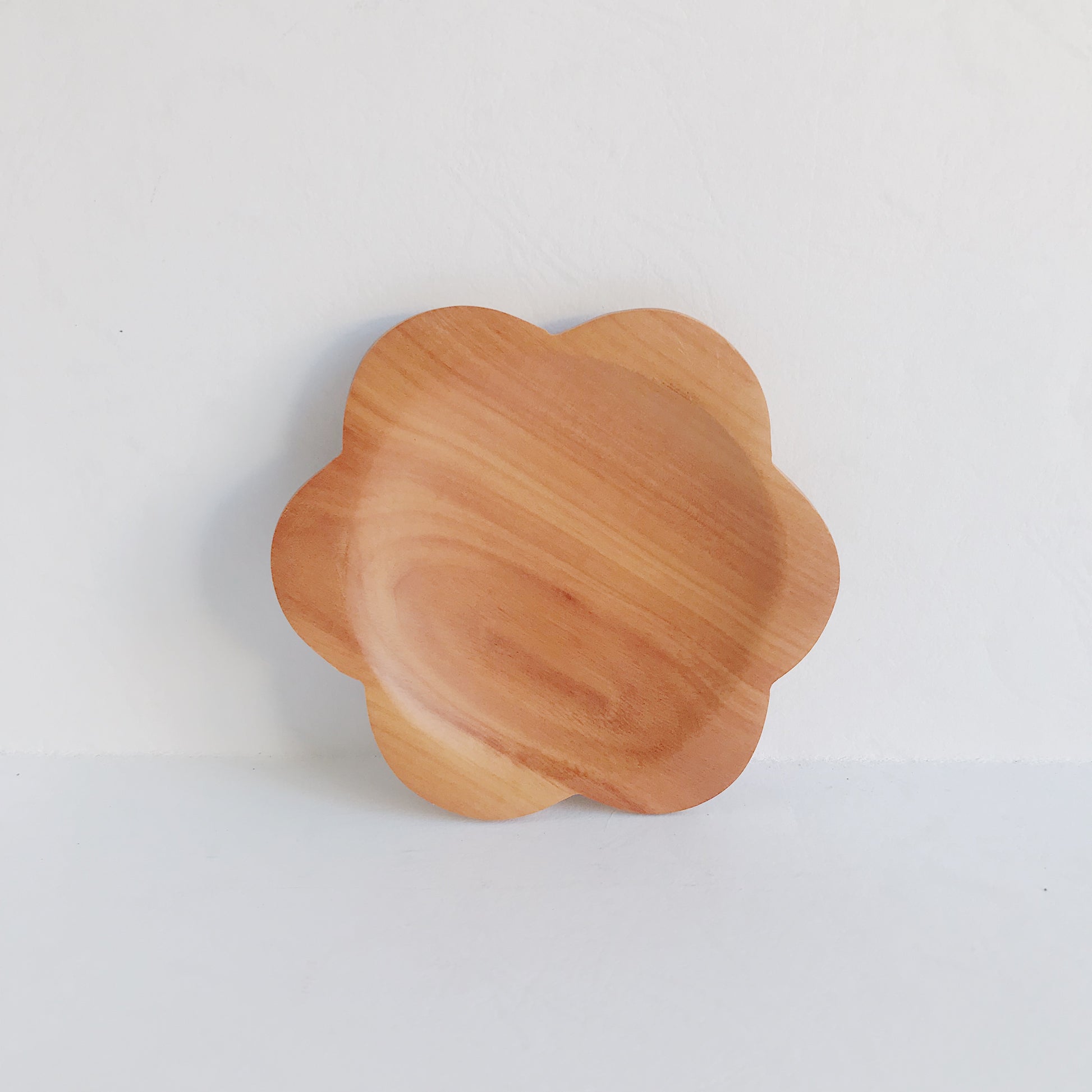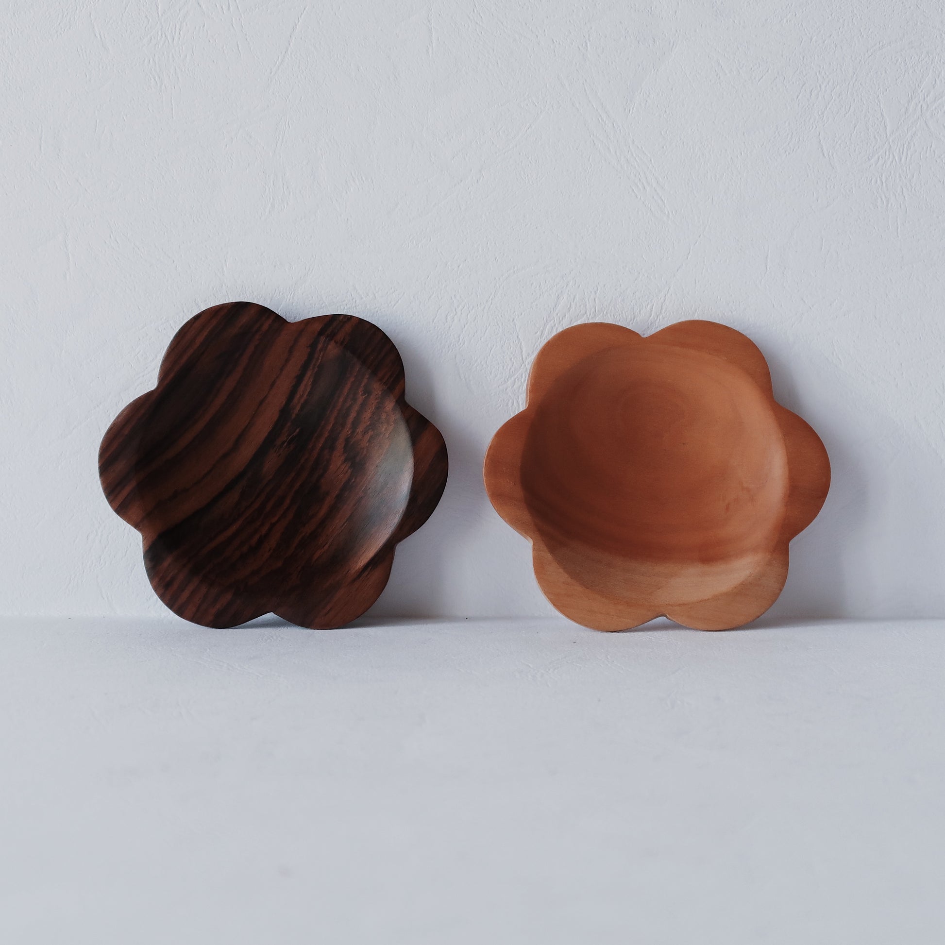 Cute flower shaped small plate for serving side dishes. Made in 2 material, Sapodilla wood and Indonesian Rosewood.